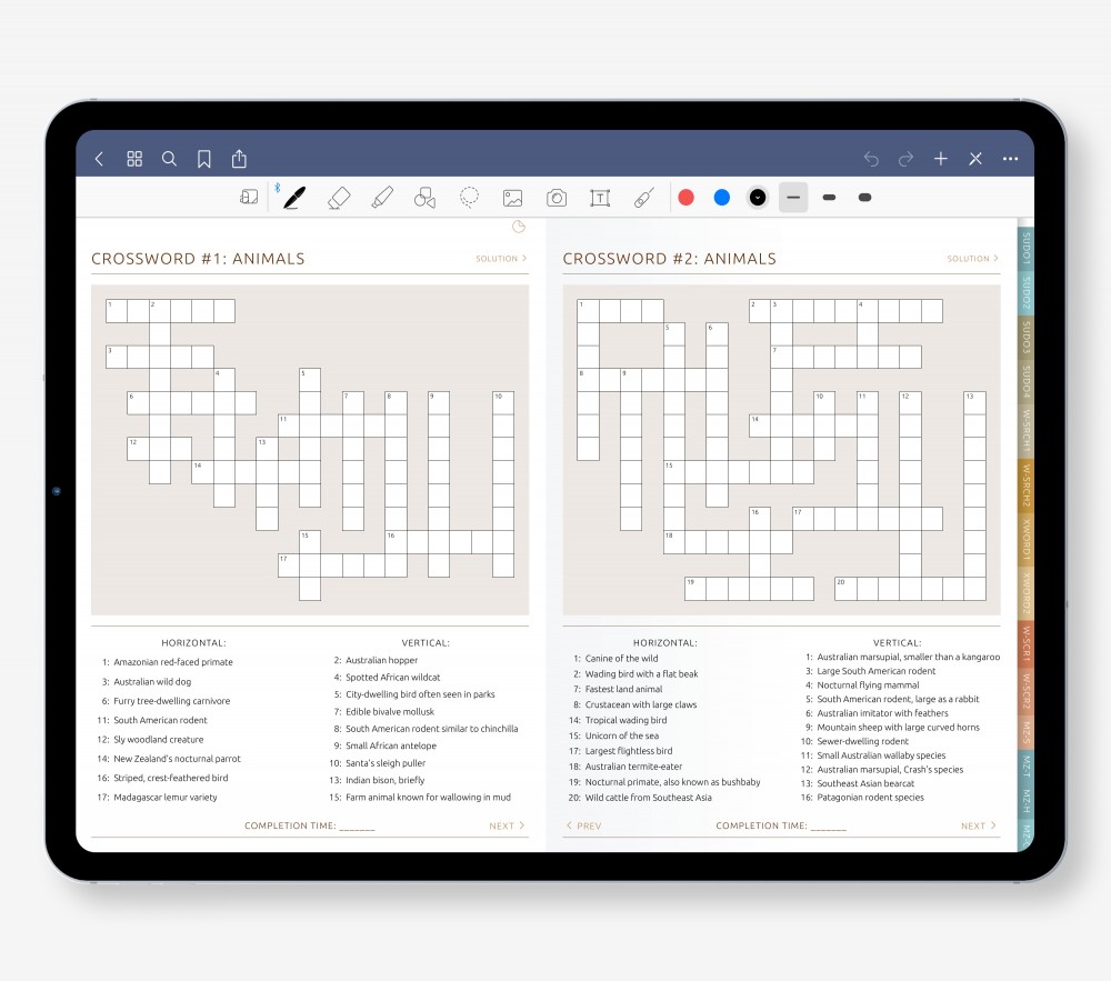 A wide mix of puzzle types — from crosswords and word searches to sudoku, mazes, and word scrambles — for endless variety.